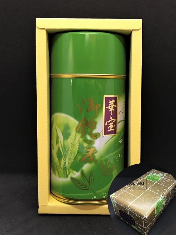 奥久慈煎茶【華宝】300g缶箱入です。 おすすめの奥久慈茶 当園が自信をもっておすすめするお茶です。茶葉を厳選し仕上げた逸品。味・香り・水色と三拍子揃いどなたにもご満足いただけます。贈り物に、自分へのご褒美に・・・。 大切な方へのご贈答にどうぞ♪ ・缶代+300円 ・オリジナルの包装紙で包装致します。(手提袋付き) ※缶、包装紙等のデザインは変更になる場合がございます。